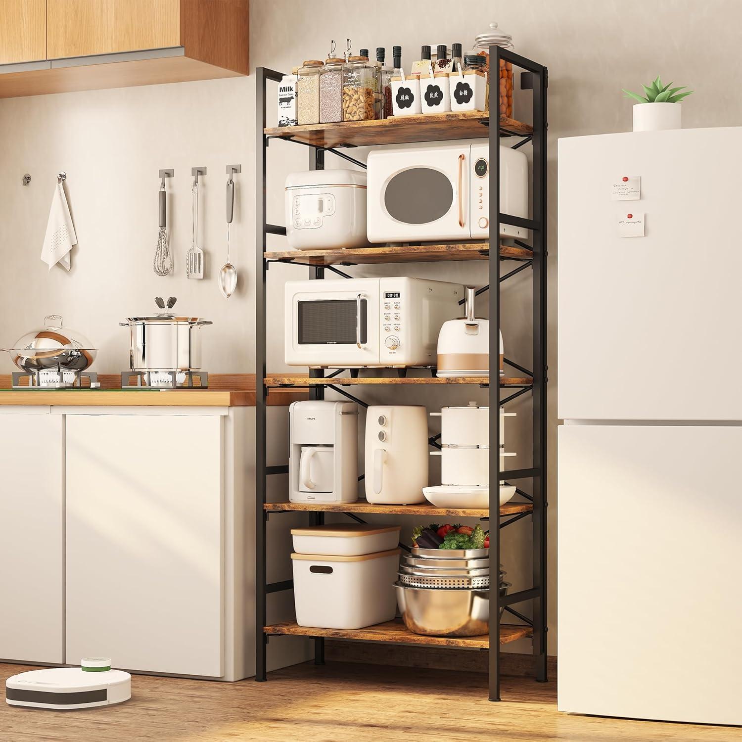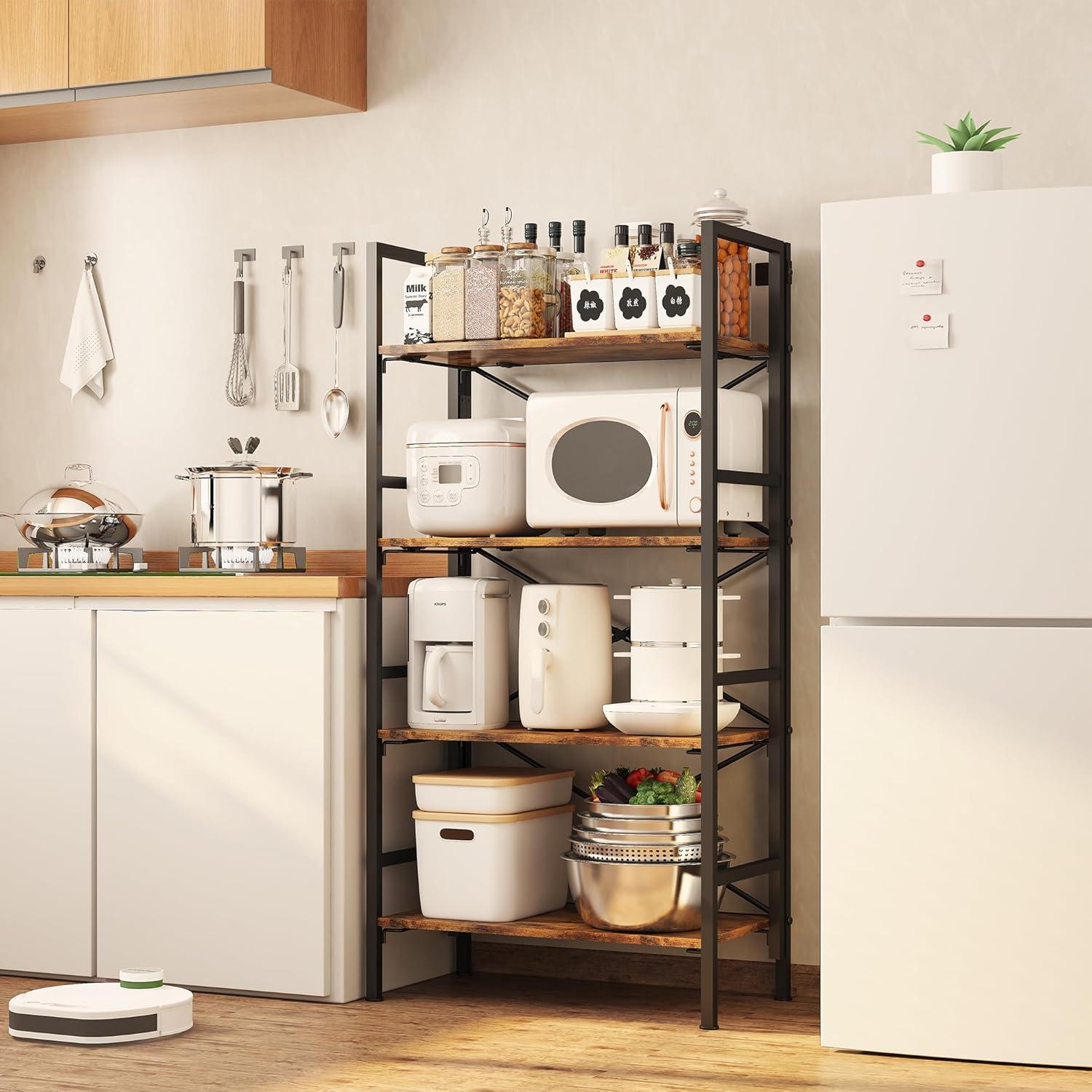 【Multi-Functional Storage Solution】 The open-back design with 4 spacious tiers (12.6″ deep) organizes books, decor, kitchen appliances, plants, and more. Perfect as a bookcase, display rack, pantry shelf, or office organizer – adapts to any room effortlessly.