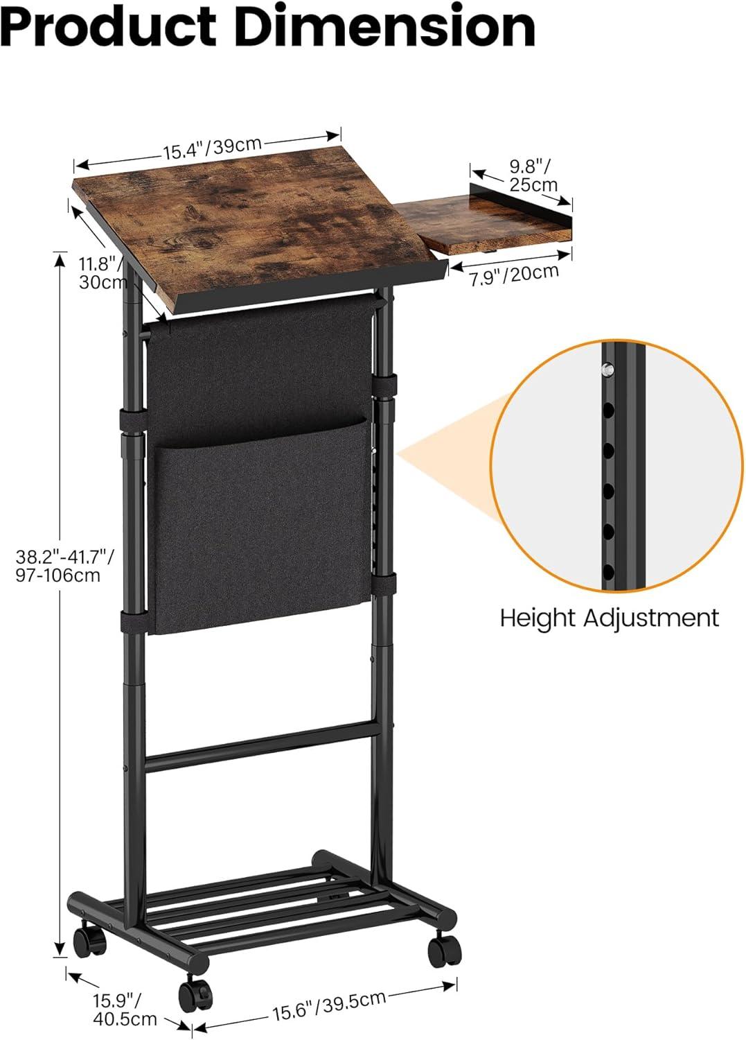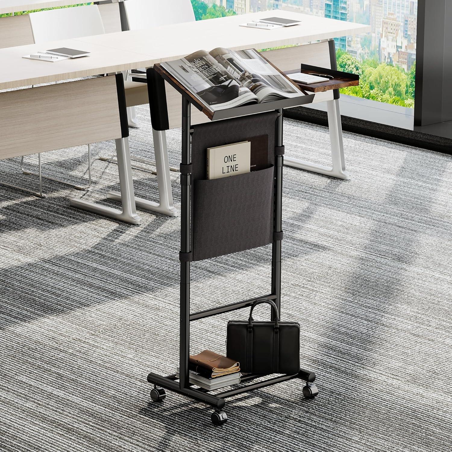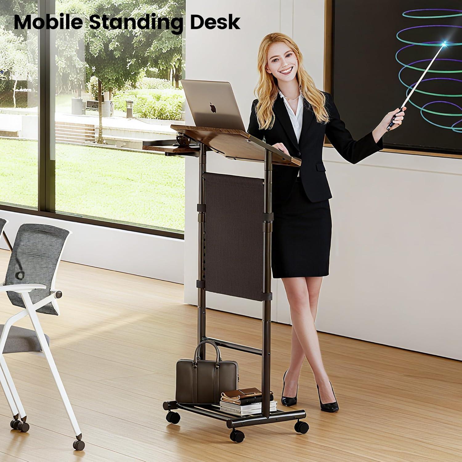 Homeiju Mobile Standing Desk Podium, Height Adjustable Rolling Lectern with 360° Wheels & Storage Bag