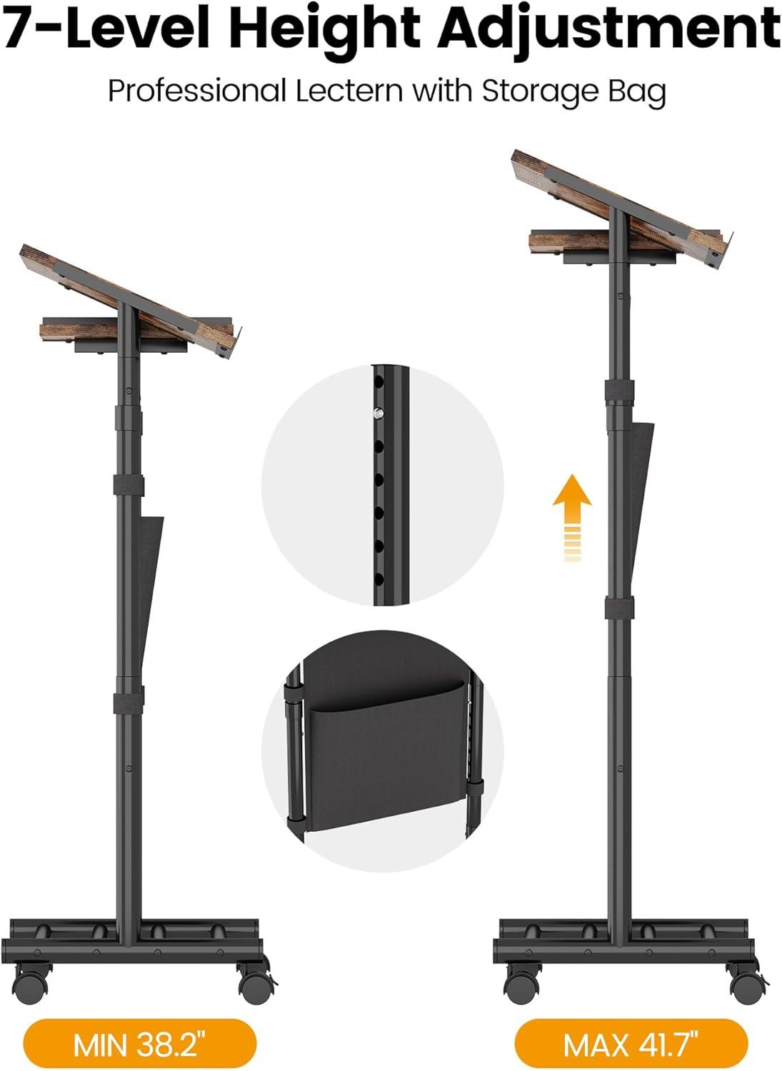imageHomeiju Mobile Standing Desk Podium Height Adjustable Rolling Lectern with 360 Wheels ampamp Storage Bag