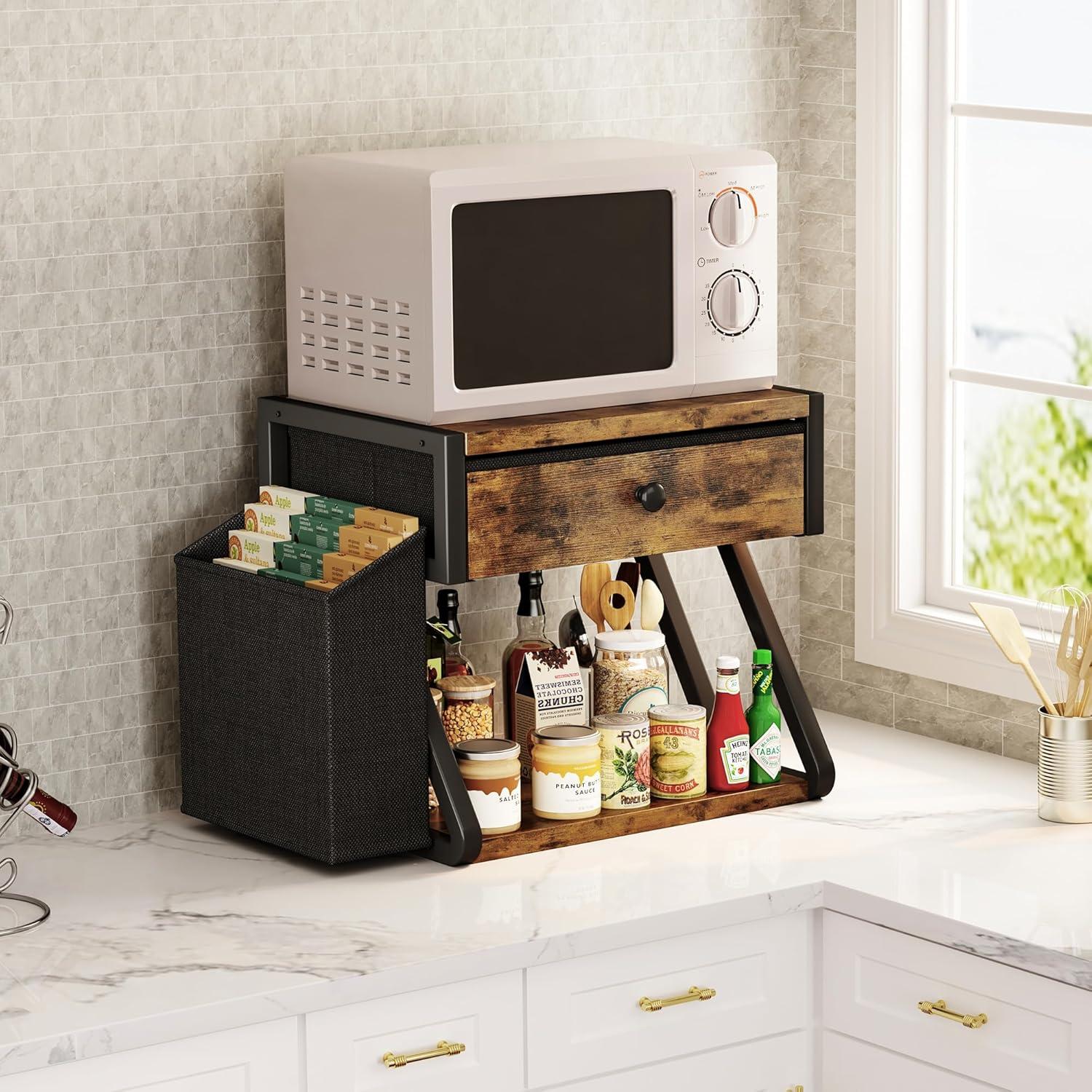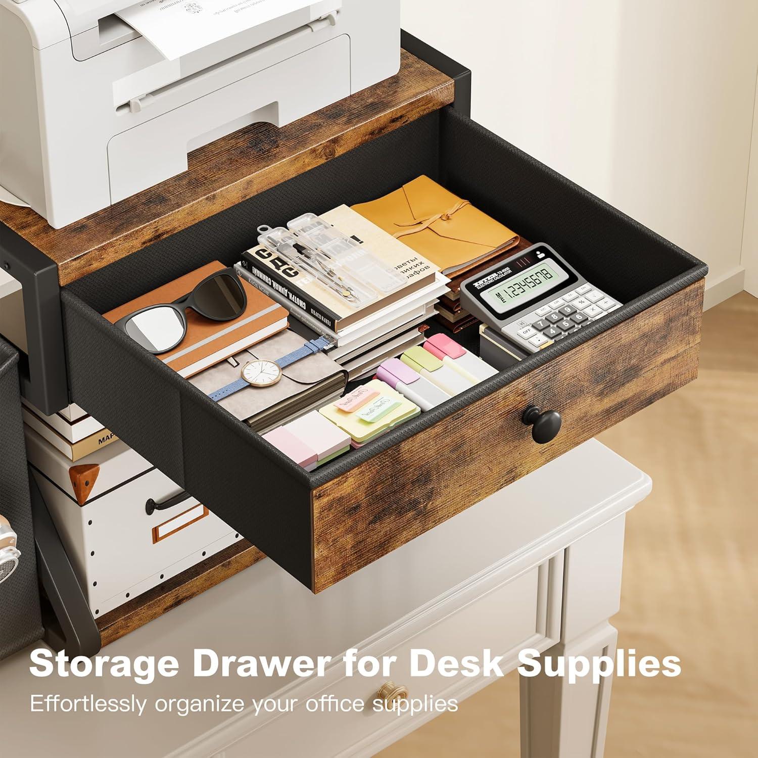 [All-in-One Printer]: The 2 tier printer stand can be used as a desktop shelf or as an under desk organizer, and also provide an additional Storage Bag and drawer, which will help organize your working space at home or office more efficiently