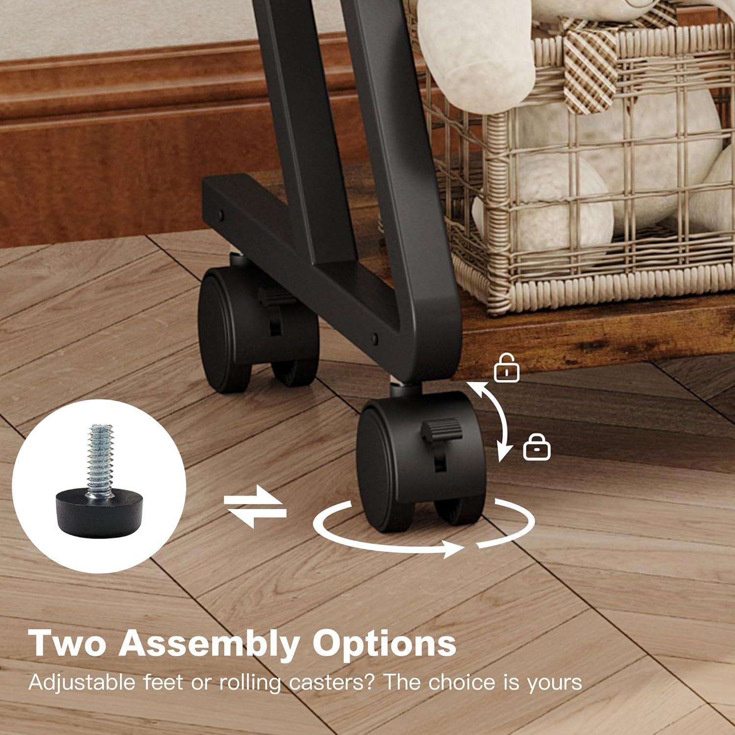 [What You Get]: An industrial mobile printer stand with a large table top that can support up to 65 lb, a large storage bag, drawer and 4 sturdy wheels—2 of which are lockable to keep it in position