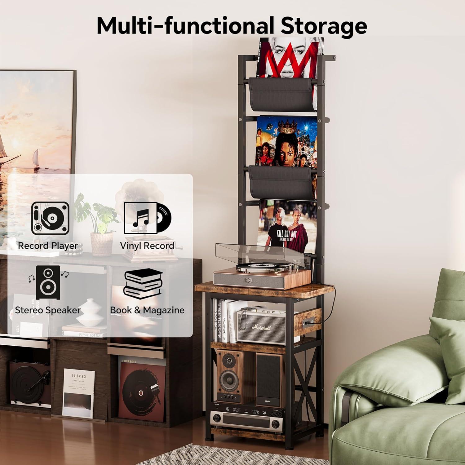 【3-in-1 Record Player Desk】The record player table features 3-layer vinyl display rack and 2 shelves, providing ample storage space for your record players, records, speakers, audio equipment, books, magazines and more. The record holder can hold up to 200 records.
